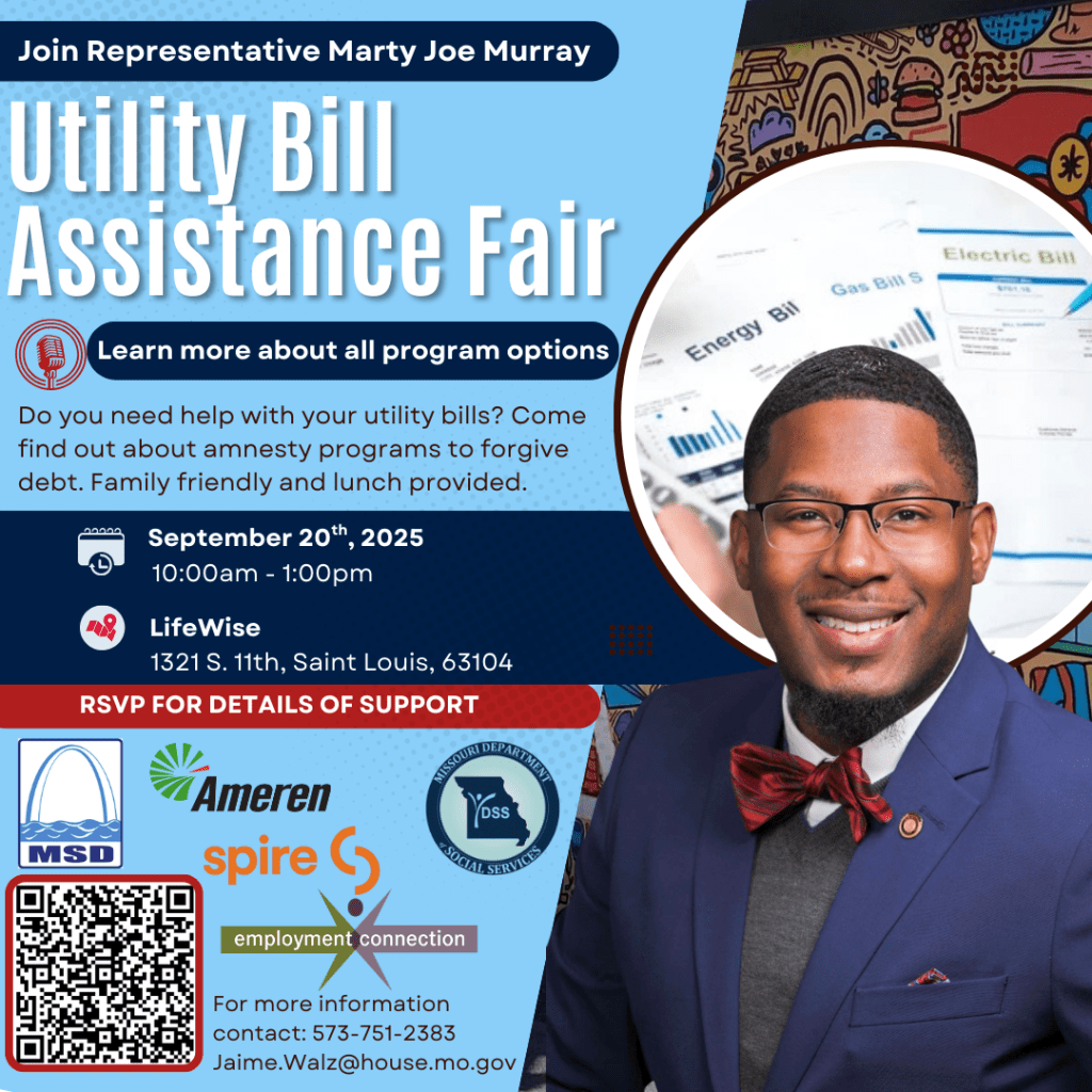 I’m inviting every member of our community to the Utility Assistance Fair because too many Missouri families are one past-due notice away from crisis. The goal is simple. Connect people to real help; on the spot. Applications. Payment plans. Emergency relief. Case management. We’re bringing the Missouri Department of Social Services’ LIHEAP team together with Ameren, Spire, the Metropolitan Sewer District, Heat Up/Cool Down St. Louis, the Urban League, Employment Connections and more. When a shutoff notice lands in your mailbox, you shouldn’t have to guess where to turn. You should be able to walk into a room and get answers. Today.